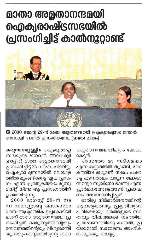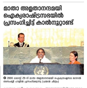 ഐക്യരാഷ്ട്രസഭയിൽ അമ്മ നടത്തിയ ചരിത്രപ്രധാനമായ പ്രസംഗവുമായി ബന്ധപ്പെട്ട വിവരങ്ങൾ.